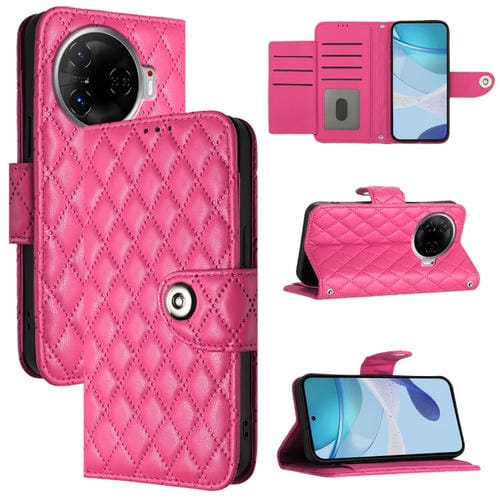 Funda para Tecno Camon 30 Pro 5G de Cuero con Tapa, Textura Romboidal y Cordón (Rojo Rosa)