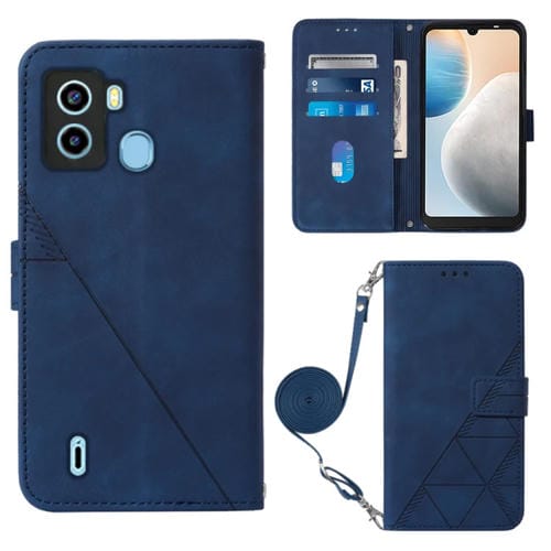 Funda de Cuero Flip 3D En Relieve para Tecno Pop 6 Crossbody (Azul)