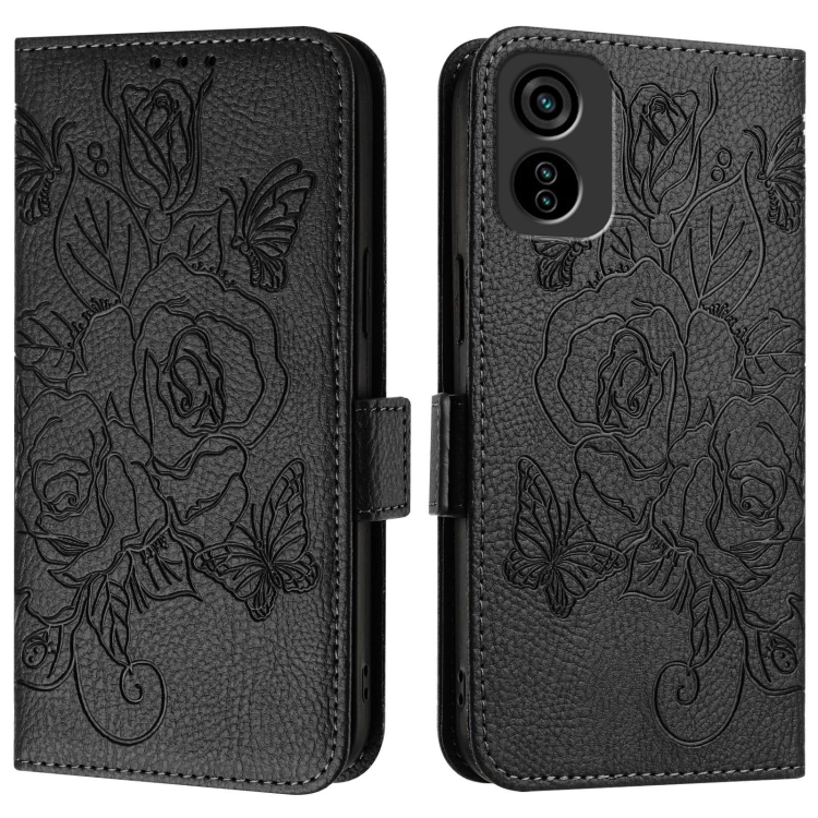 Funda de Cuero Antirrobo RFID para Tecno Pop 6C con Relieve Rosa (Negro)