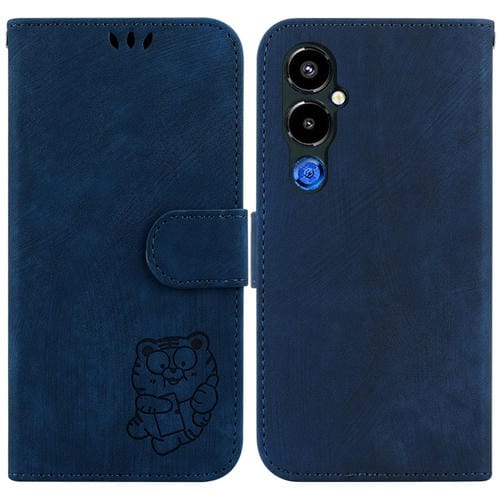 Funda de Cuero para Tecno Pova 4 Pro Little Tiger con Relieve (Azul Oscuro)