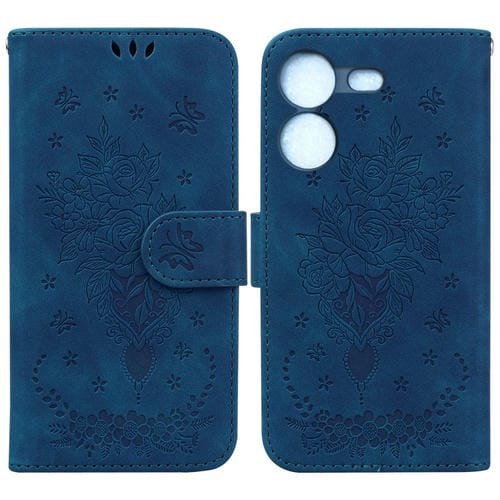 Funda para Tecno Pova 5 Butterfly Rose en Cuero en Relieve (Azul)
