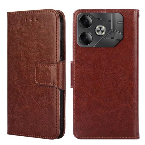 Funda de Cuero para Tecno Pova 6 5G con Textura de Cristal (Marrón)