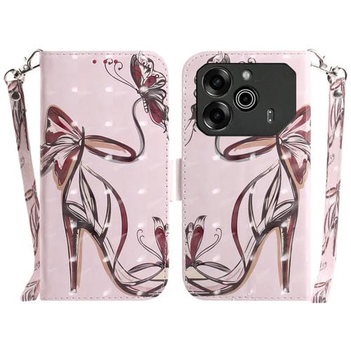 Funda de Cuero para Tecno Pova 6 y Pova 6 Pro con Tapa Horizontal 3D (Mariposa de Tacón Alto)