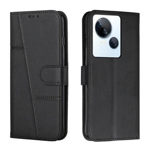 Funda de Cuero para Tecno Spark 10 5G con Costura y Hebilla (Negro)