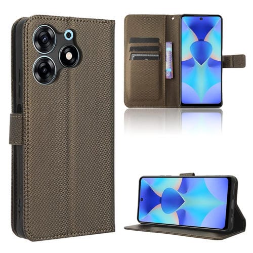 Funda para Tecno Spark 10 Pro / K17 de Cuero con Textura de Diamante (Marrón)