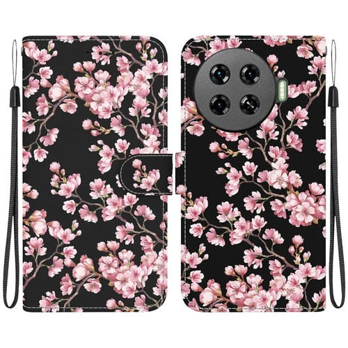 Funda de Cuero para Tecno Spark 20 Pro 4G con Dibujo y Textura de Cristal (Flor de Ciruelo)