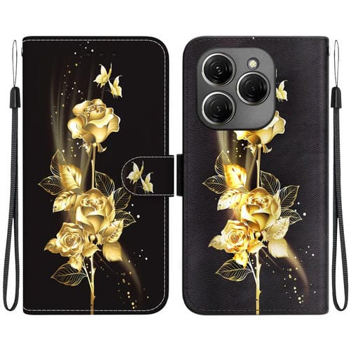 Funda de Cuero para Tecno Spark 20 Pro con Dibujo Coloreado y Textura de Cristal (Mariposa Dorada Rosa)