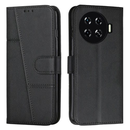 Funda para Teléfono + Tecno Spark 20 Pro + Cuero con Hebilla + Textura de Pantorrilla (Negro)