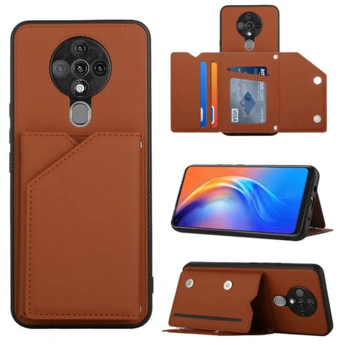 Funda para Tecno Spark 6 Skin Feel PU + TPU + PC Case Marrón