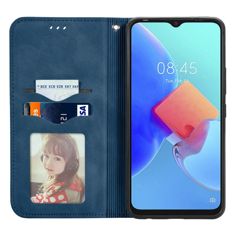 Funda Magnética de Cuero para Tecno Spark 8C Retro Skin Feel (Azul)