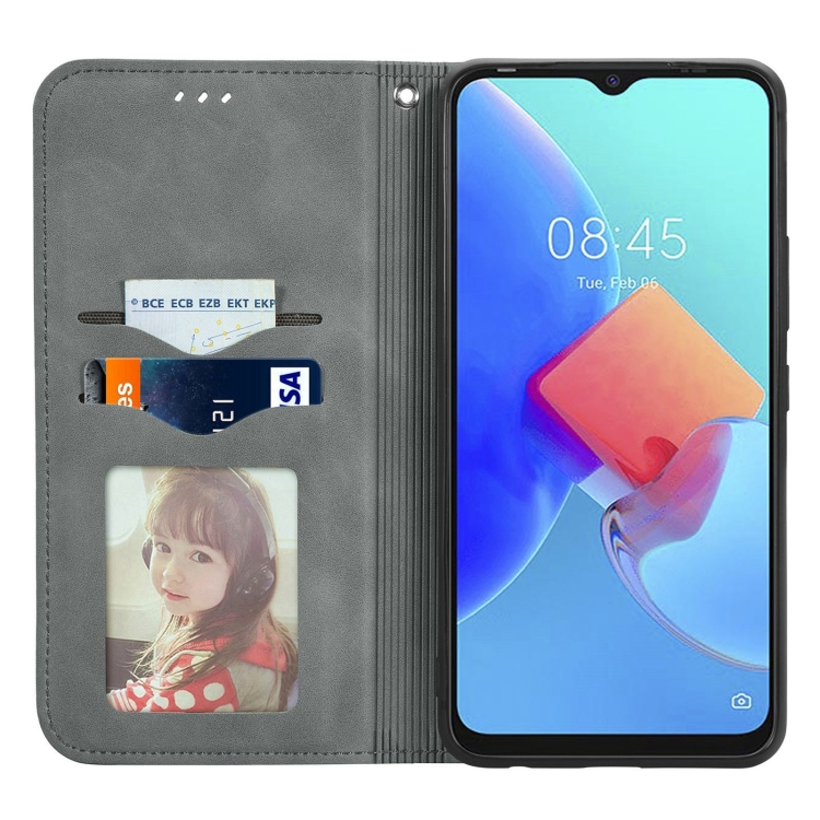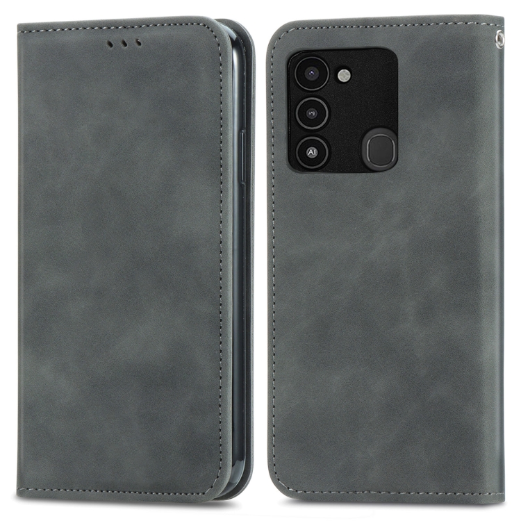 Funda Magnética de Cuero para Tecno Spark 8C Retro Skin Feel (Gris)