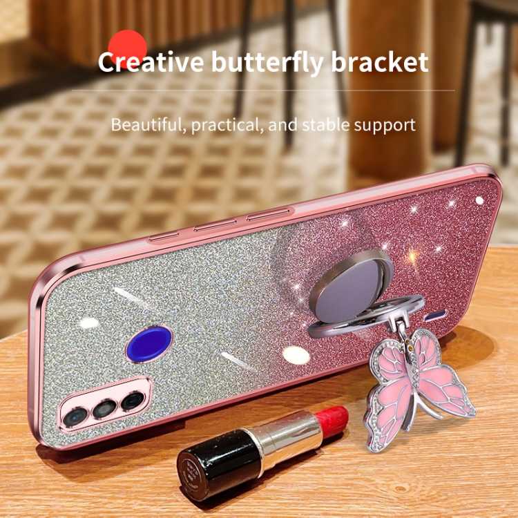 Funda TPU para Tecno Spark Go 2020 con Soporte Mariposa y Brillo Degradado (Azul Sierra)