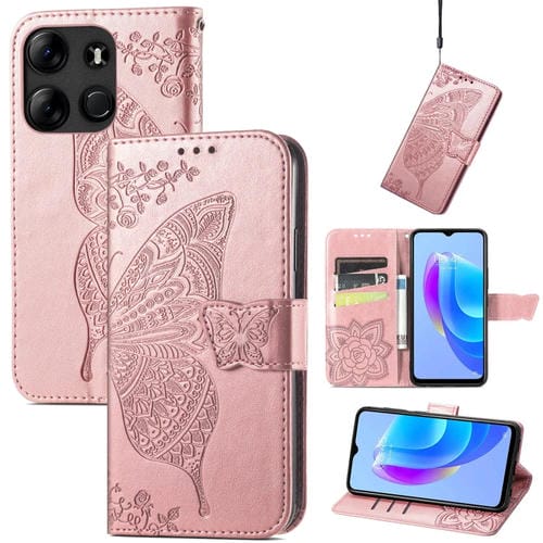 Funda de Cuero para Tecno Spark Go 2023 Butterfly Love Flower en Relieve (Oro Rosa)