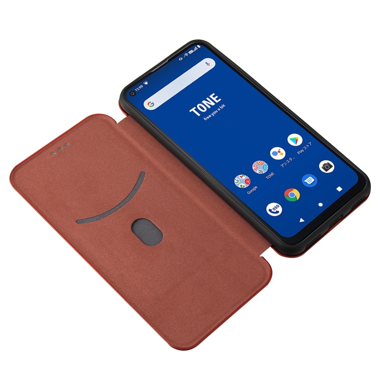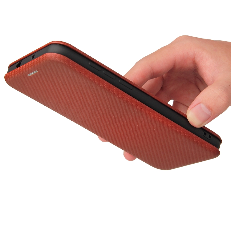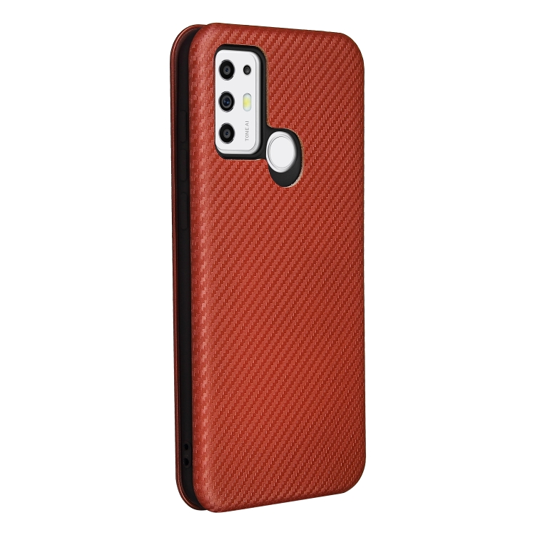 Funda para Tone E21 Fibra de Carbono Textura Magnética Horizontal Flip TPU + PC + Cuero PU con Ranura (Marrón)
