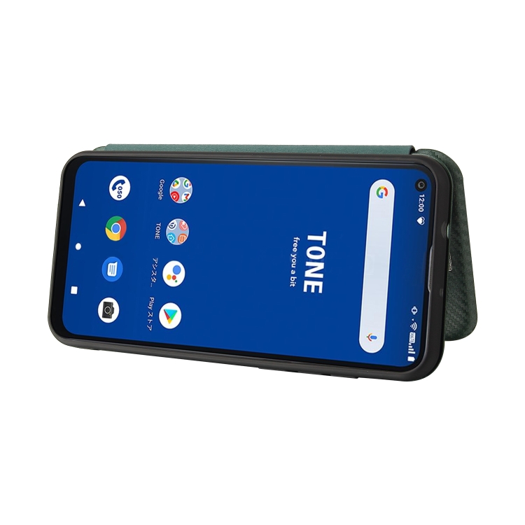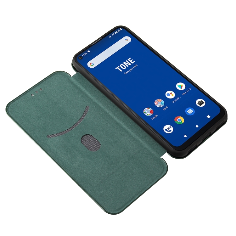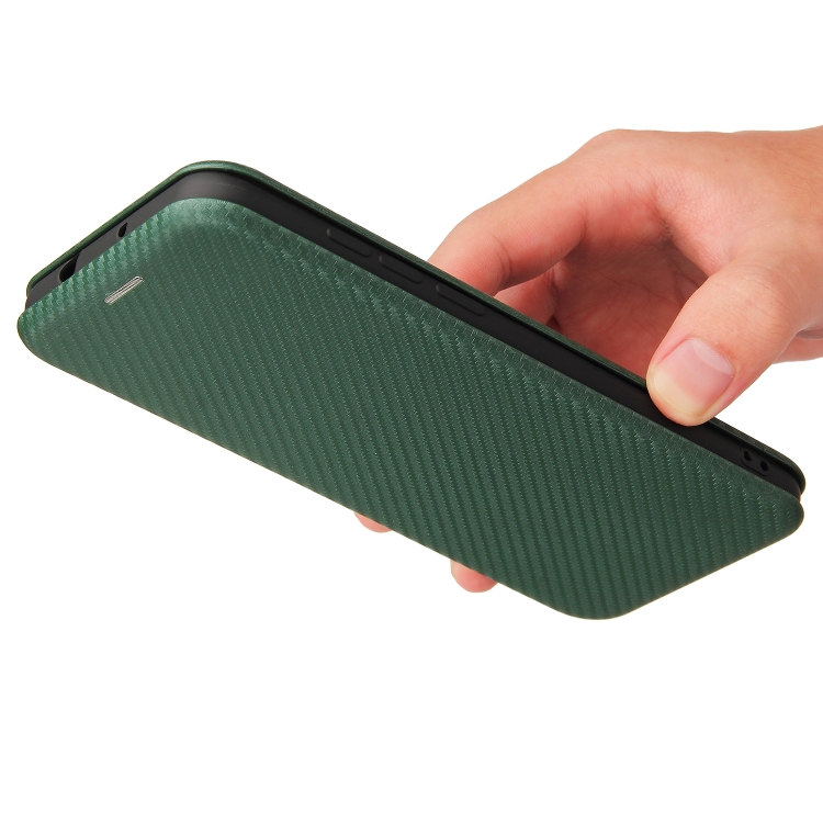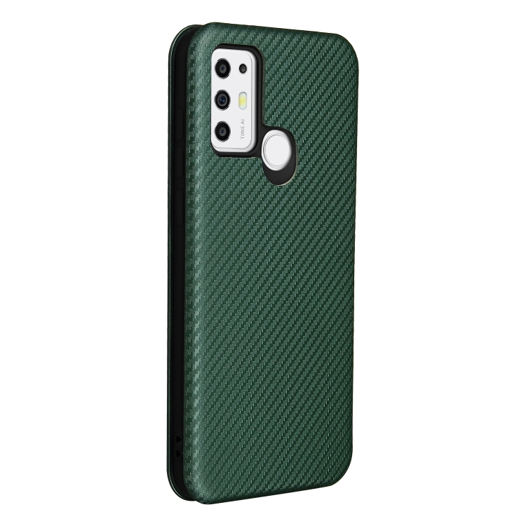 Funda para Tone E21 Fibra de Carbono Magnético Horizontal Flip TPU + PC con Cuero PU y Ranura para Tarjeta (Verde)