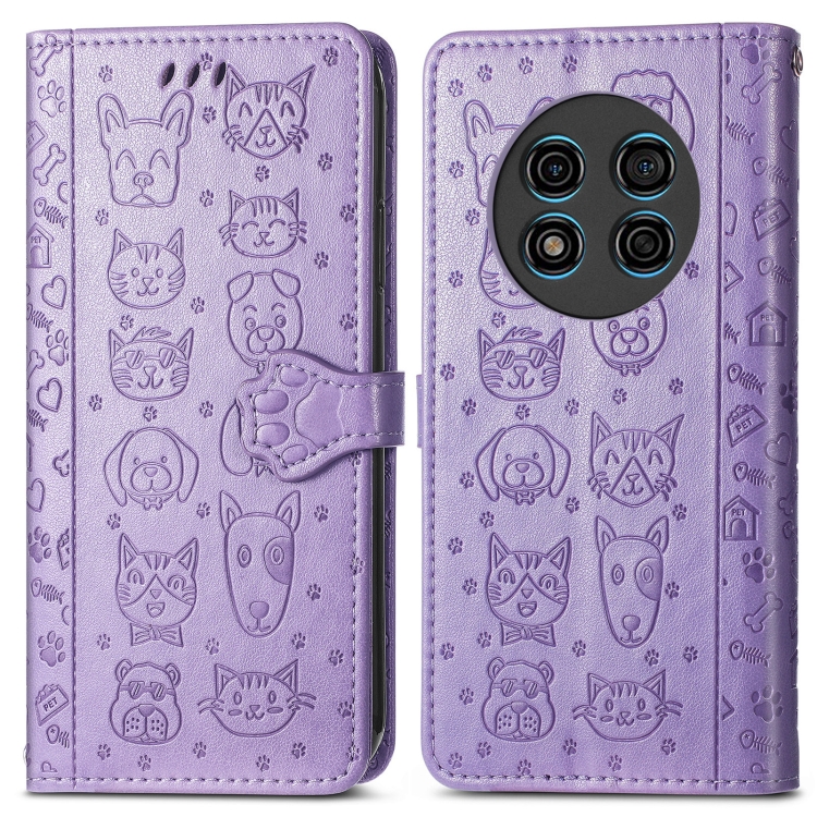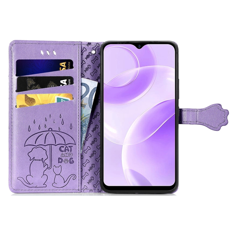 Funda para Ulefone Note 15 Cuero con Relieve Perro y Gato (Púrpura)