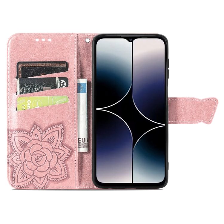 Estuche para Ulefone Note 16 Pro Butterfly Love Flower de Cuero En Relieve (Oro Rosa)