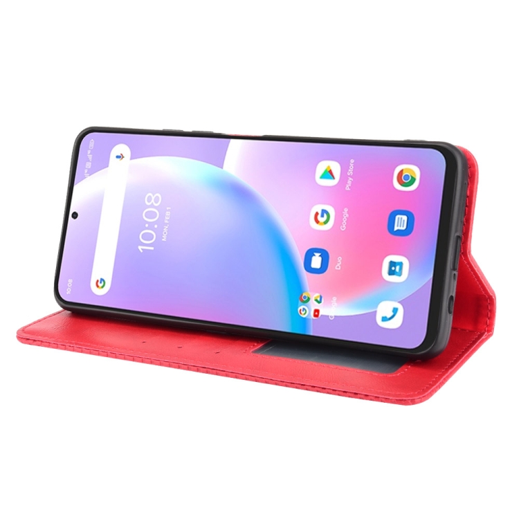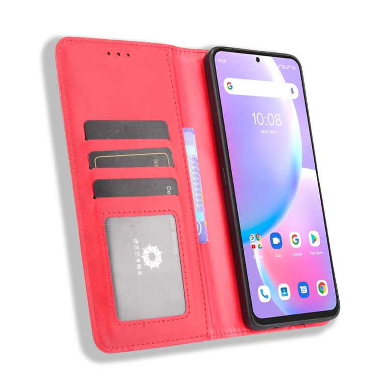 Funda de Cuero para Umidigi A11 Pro Max con Hebilla Magnética, Textura Crazy Horse, Soporte, Ranuras y Marco de Fotos (Rojo)