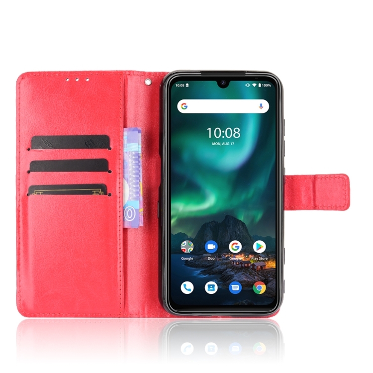 Funda de Cuero Umidigi Bison Retro Crazy Horse Texture con Soporte, Ranuras para Tarjetas y Cordón (Rojo)