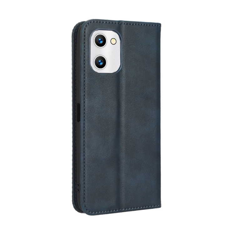 Funda para Teléfono Umidigi C2 C1 C1 Max Cuero Textura Retro Hebilla Magnética (Azul)