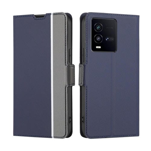 Para Vivo Iqoo 10 Twill Texture Side Button Leather Phone Case (Azul)