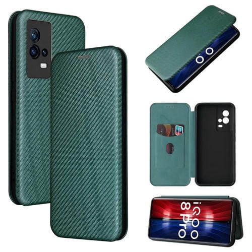 Para Vivo Iqoo 8 Pro Carbon Fibre Textura Magnética Horizontal Flip TPU + PC + Funda de Cuero Pu con Ranura para Tarjeta (Verde)