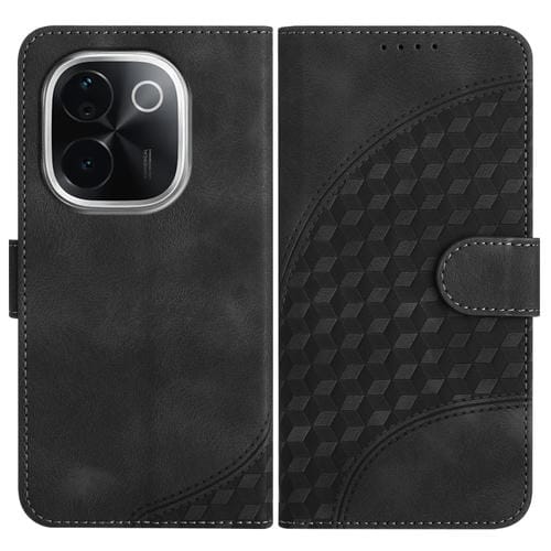 Para Vivo Iqoo Z9S Pro / T3 Pro 5G India Yx0060 Funda de Cuero para Teléfono con Relieve de Cabeza de Elefante y Cordón (Negro)