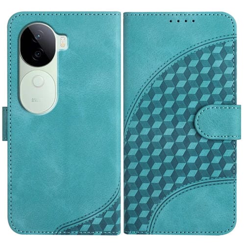 Para Vivo Iqoo Z9S / V40E India Yx0060 Funda de Cuero para Teléfono con Relieve de Cabeza de Elefante y Cordón (Azul Claro)