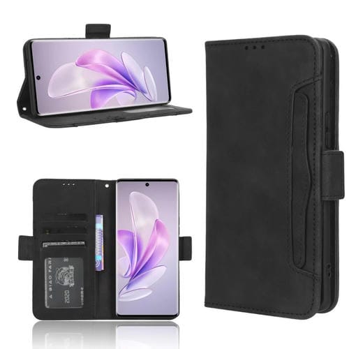 Para Vivo S17 5G / S17 Pro Skin Feel Becerro Textura Ranuras para Tarjetas Funda de Cuero para Teléfono (Negro)