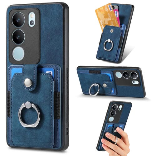 Para Vivo S17 Pro Funda para Teléfono con Billetera y Tarjeta con Anillo con Sensación de Piel Retro (Azul)