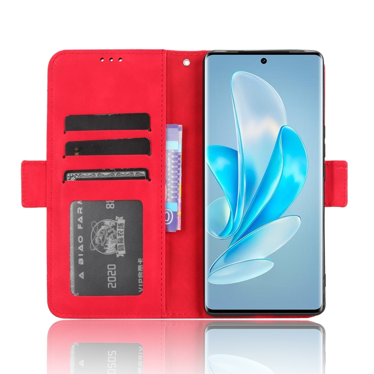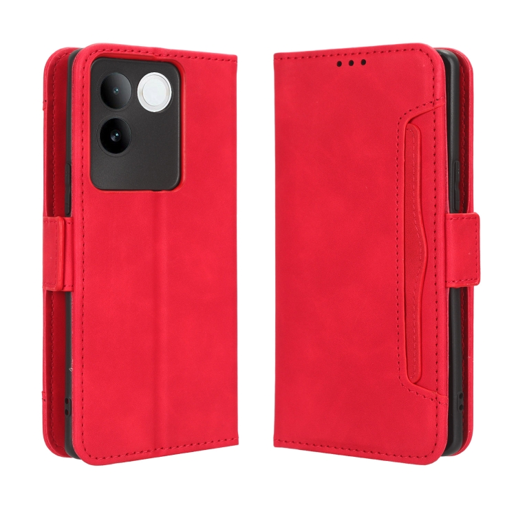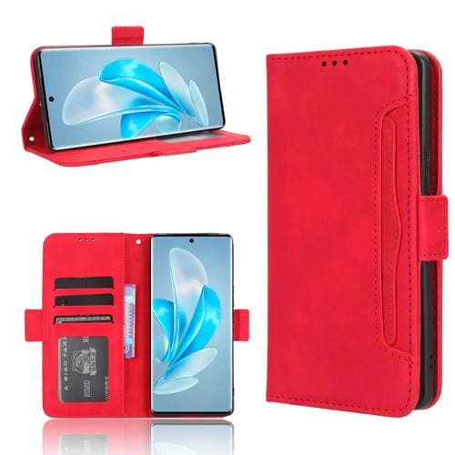 Para Vivo S17E Skin Feel Becerro Textura Ranuras para Tarjetas Funda de Cuero para Teléfono (Rojo)