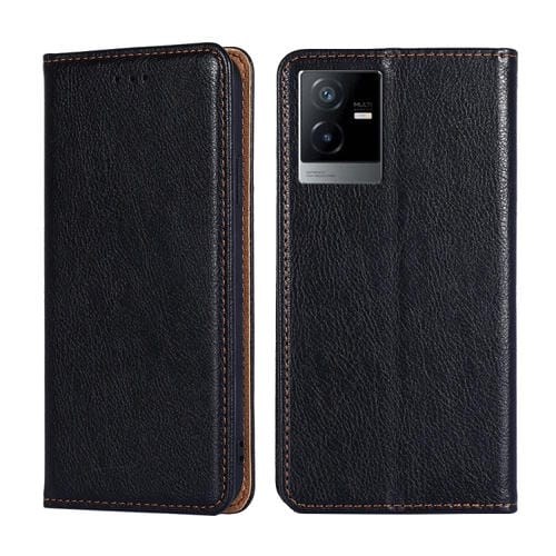 Para Vivo T2X 5G/Y73T/Iqoo Z6X Estuche para Teléfono de Cuero Magnético de Color Sólido con Aceite Brillante (Negro)
