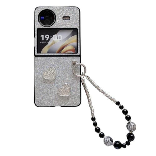 Para Vivo X Flip Gradient Color Glitter Funda Protectora para Teléfono a Prueba de Golpes con Cadena de Cuentas (Gris)
