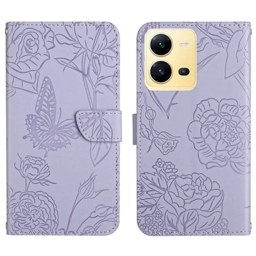Para Vivo X80 Lite/V25 5G Ht03 Skin Feel Butterfly Funda de Cuero con Tapa En Relieve para Teléfono (Púrpura)