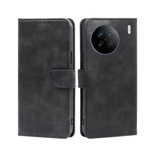 Para Vivo X90 Becerro Textura Hebilla Flip Funda de Cuero para Teléfono (Negro)