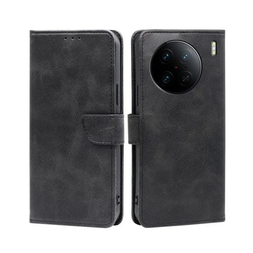 Para Vivo X90 Pro + Funda de Cuero con Tapa y Hebilla de Textura de Pantorrilla (Negro)