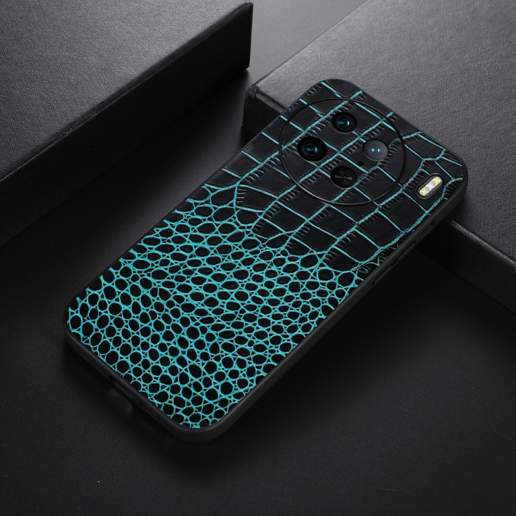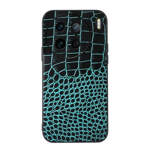 Para Vivo X90 Pro Funda de Teléfono de Cuero Genuino con Textura de Cocodrilo (Cian)