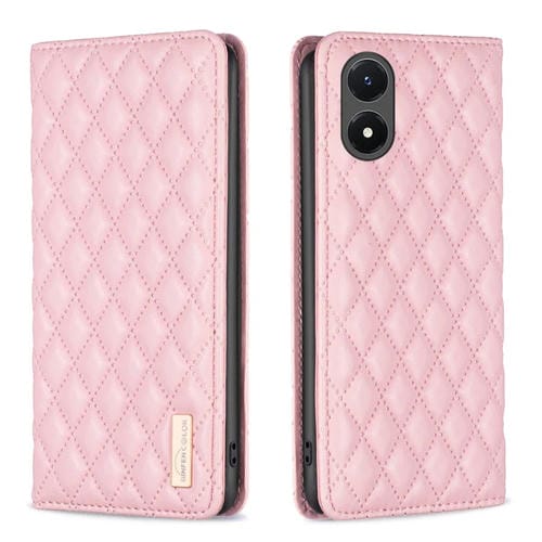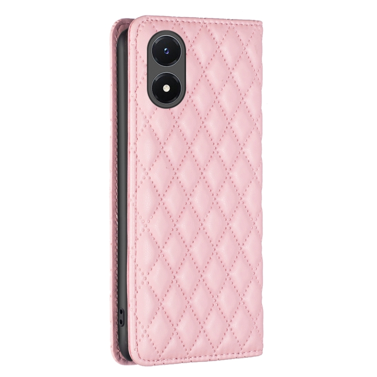Para Vivo Y02S Diamond Lattice Funda de Teléfono con Tapa de Cuero Magnético (Rosa)