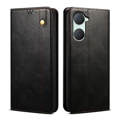 Para Vivo Y03 4G Oil Wax Crazy Horse Texture Funda de Cuero para Teléfono (Negro)