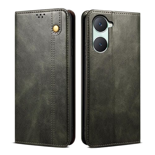 Para Vivo Y03 4G Oil Wax Crazy Horse Texture Funda de Cuero para Teléfono (Verde)