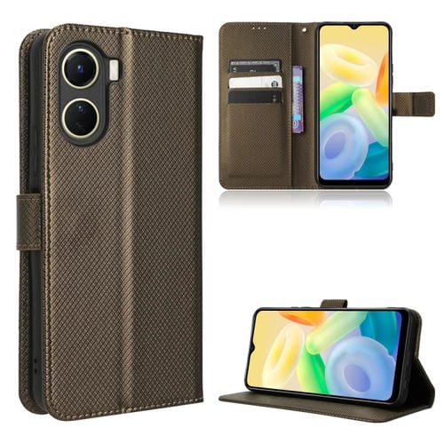 Para Vivo Y16 / Iqoo Z7I Caja del Teléfono de Cuero con Textura de Diamante (Marrón)