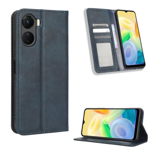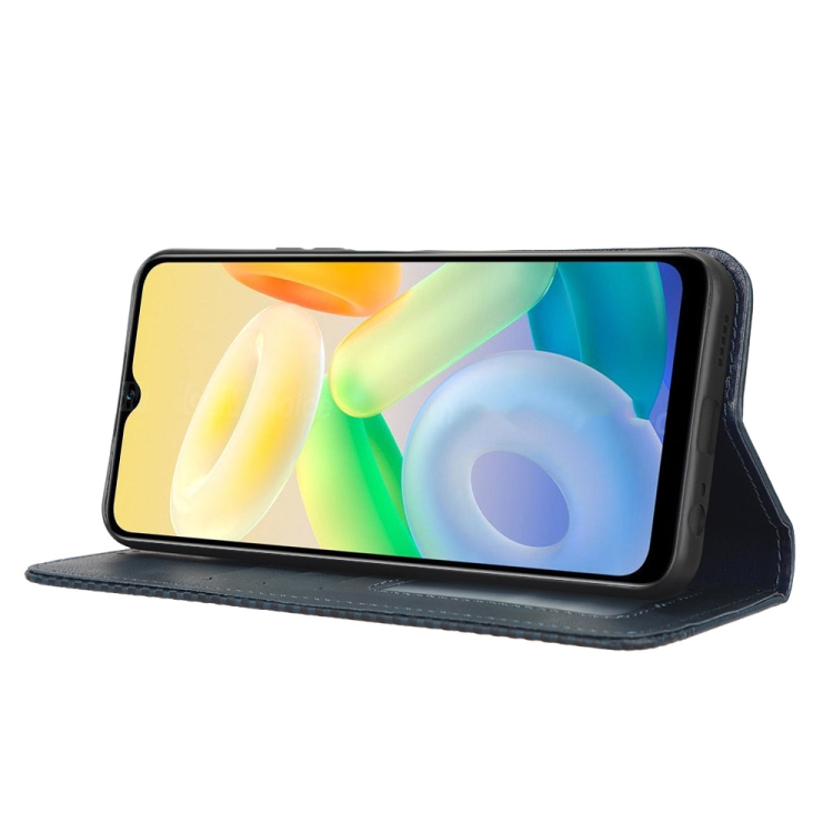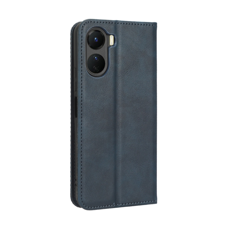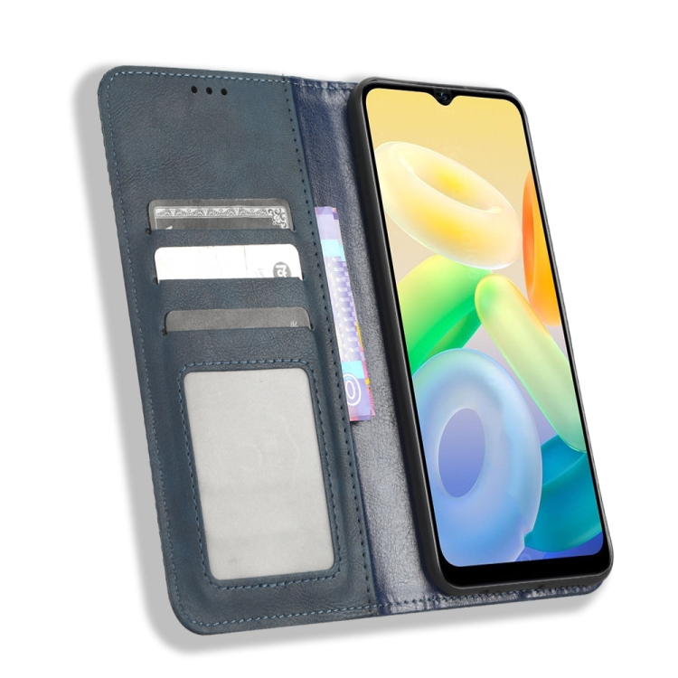 Para Vivo Y16 / Iqoo Z7I Hebilla Magnética Textura Retro Funda de Cuero para Teléfono (Azul)
