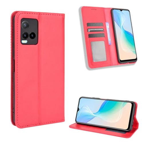 Para Vivo Y33T / Y33S / Y21 / Y21S Hebilla Magnética Textura Retro Funda de Cuero para Teléfono (Rojo)