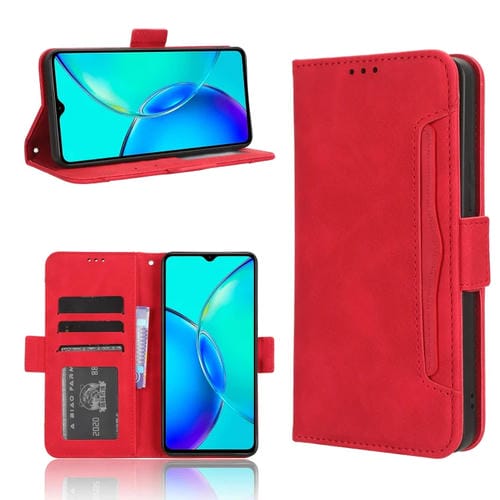 Para Vivo Y35 + 5G Skin Feel Becerro Textura Ranuras para Tarjetas Funda de Cuero para Teléfono (Rojo)