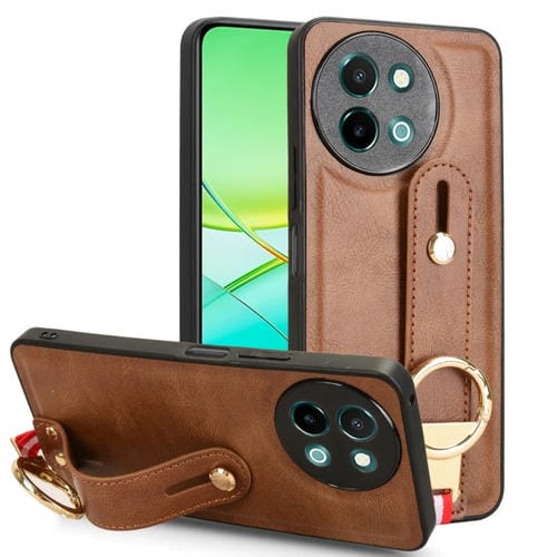 Para Vivo Y38 5G / Y200I 5G Funda Trasera de Cuero para Teléfono con Pulsera (Marrón)