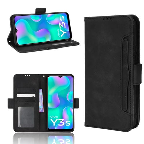 Para Vivo Y3S 2021 Siente la Piel del Teléfono de Cuero con Patrón de Pantorrilla (Negro)