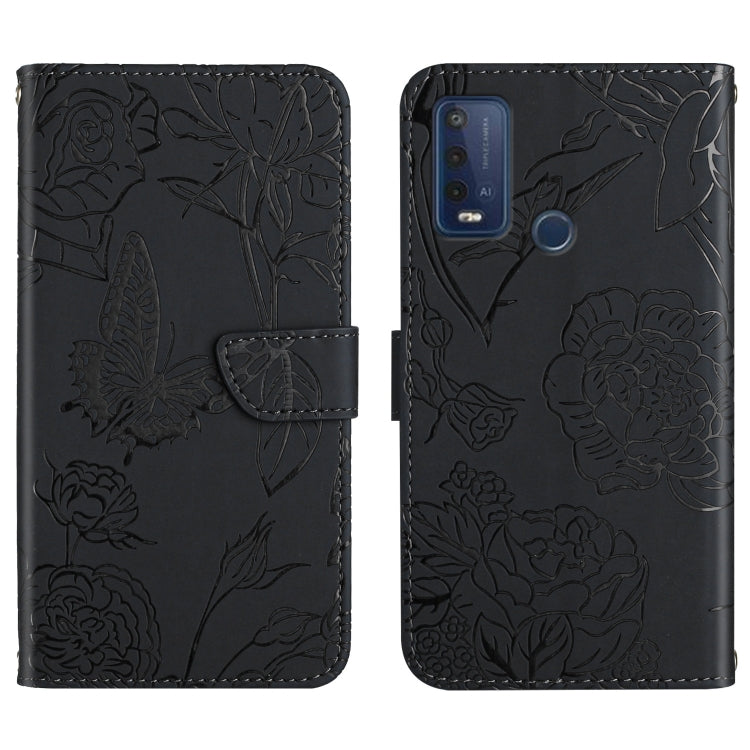 Funda de Cuero En Relieve para Wiko Power U30 Siente la Piel de la Mariposa (Negro)