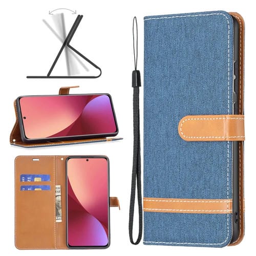 Para Xiaomi 12 Color Denim Texture Texture Cuero Case (Azul Oscuro)