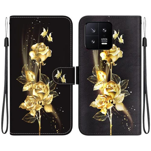 Para Xiaomi 13 5G Funda de Teléfono de Cuero con Dibujo Coloreado con Textura de Cristal (Mariposa Dorada Rosa)