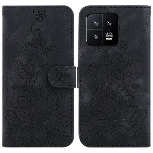 Para Xiaomi 13 5G Lily Funda de Teléfono de Cuero En Relieve (Negro)